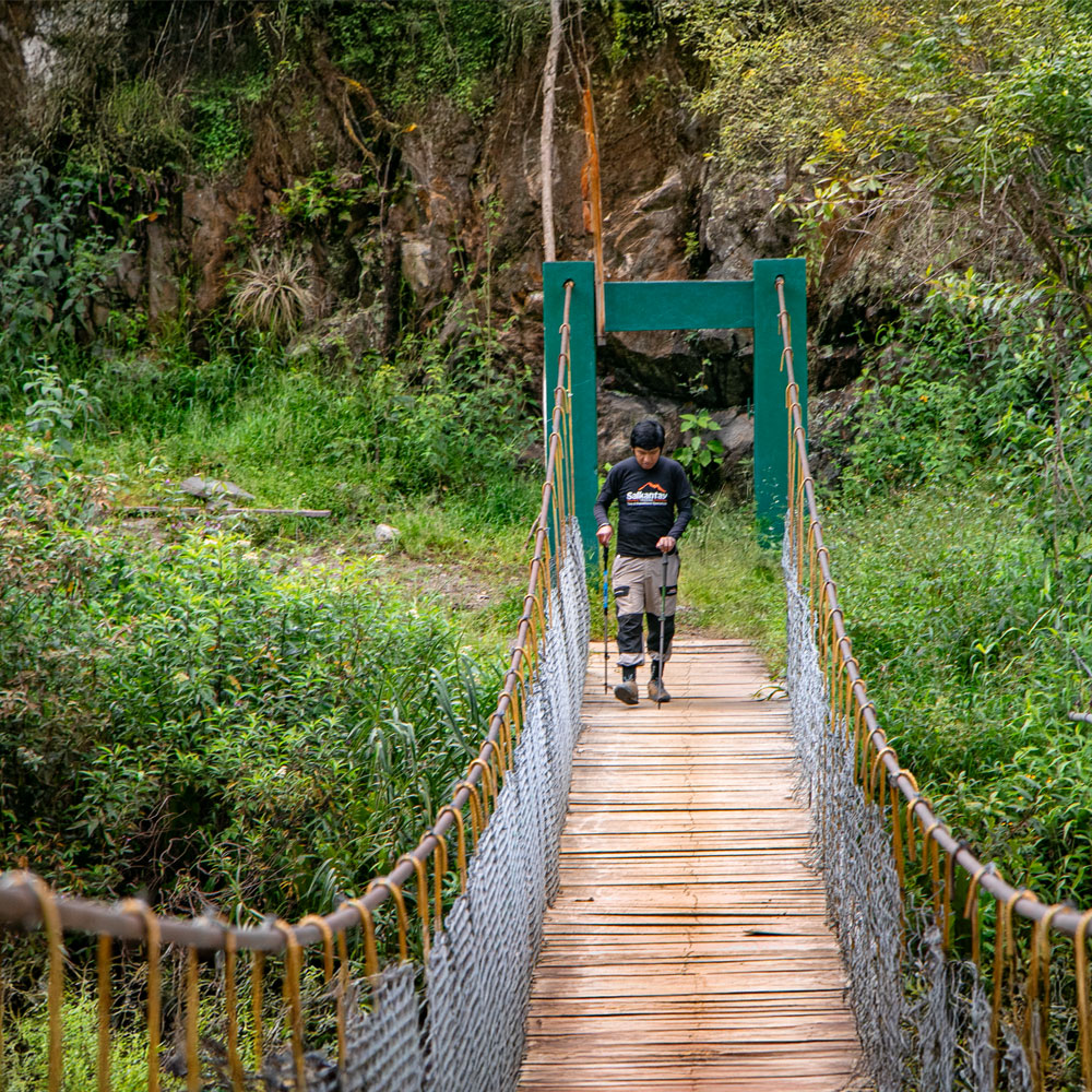 Caminaremos por una zona rocosa y escarpada donde obtendremos las hermosas vistas del valle. Después de degustar un almuerzo revitalizante, entraremos en el borde de la selva amazónica, conocido también como el “bosque nuboso”. A continuación, caminaremos por tres horas y media disfrutando de un mágico bosque tropical y presenciaremos los cambios de paisaje desde los andes hasta el amazonas. Visualizaremos panoramas coloridos, diversa vida silvestre y plantas nativas. Aquí, sentirás que el clima se vuelve mucho más cálido.