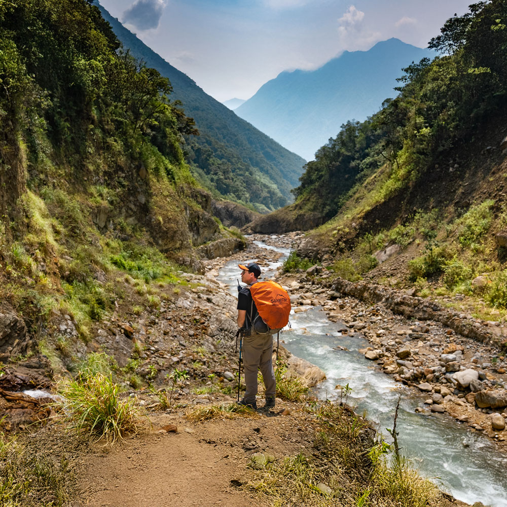 Hoy comenzaremos el día a las 6:00 a.m. con un té caliente y un nutritivo desayuno en el campamento. Emprenderemos una caminata panorámica por el Valle de Santa Teresa, un sendero de suaves descensos que nos regalará vistas espectaculares de ríos, cascadas, orquídeas y plantaciones de plátano, café y palta. Mantén los ojos bien abiertos: con un poco de suerte, podremos avistar al emblemático Gallito de las Rocas, el ave nacional del Perú.