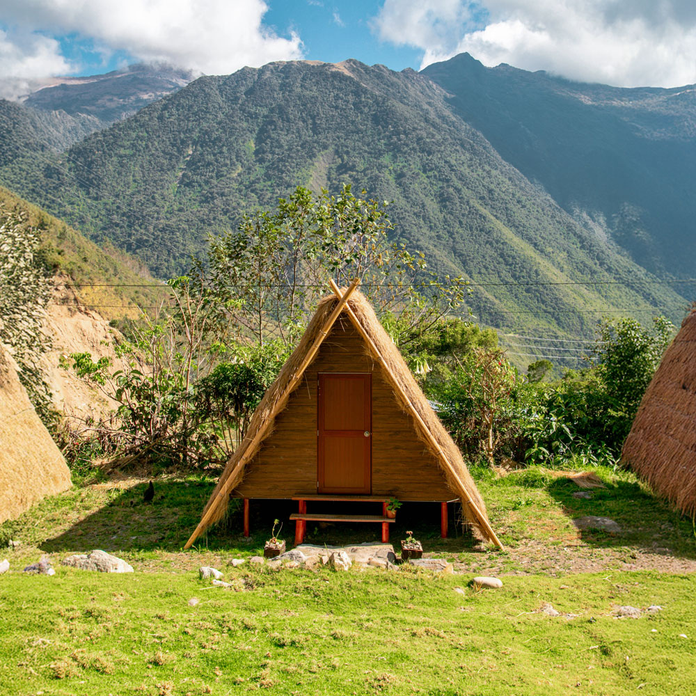Nuestro campamento Andean Huts, fiel al espíritu de nuestros ancestros, honra la conexión con la Pachamama (Madre Tierra) y los Apus (montañas sagradas). Construidos con materiales naturales del entorno, se integran de manera armónica al paisaje sin generar impacto visual. Ubicados en medio de montañas verdes y ríos que fluyen entre rocas, ofrecen un refugio auténtico bajo el brillo infinito de las estrellas.